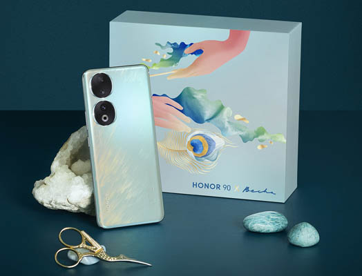 Avec un corps fin de 7,8 mm et un poids de 183 grammes, le Honor 90 est aussi agréable à tenir qu’à regarder. Son dos en verre renforcé présente le design emblématique Dual Ring de la série numérotée, apportant une touche d’élégance aux finitions du smartphone. L’artisanat et la haute couture ont inspiré sa conception, ce qui en fait un véritable chef-d’œuvre. Pour rendre cette édition limitée encore plus spéciale, la marque a collaboré avec l’artiste numérique Vesna Pesic, connue sous le nom de Becha, pour créer un coffret cadeau unique. L’art de Becha se caractérise par des images captivantes et riches en signification. Ce coffret cadeau est une pièce de collection à part entière.