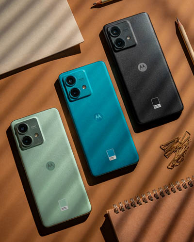 La gamme des smartphones edge40 s’étoffe avec l’arrivée du nouveau Motorola edge40 Neo. Celui-ci se distingue dès le premier regard par un design minimaliste. Avec une épaisseur de seulement 7,79 mm, il arbore des courbes subtiles qui fusionnent avec son écran incurvé. Le téléphone est décliné en trois couleurs exclusives, développées en collaboration avec Pantone : Caneel Bay (bleu), Soothing Sea (vert) et Black Beauty (noir). Le edge40 Neo propose également deux options de couleurs en Vegan Leather, offrant un toucher doux.