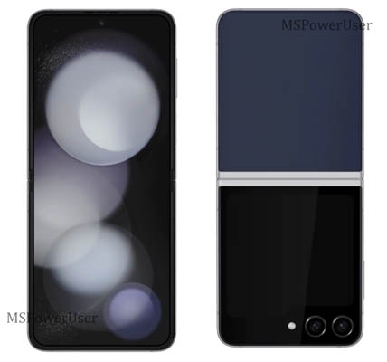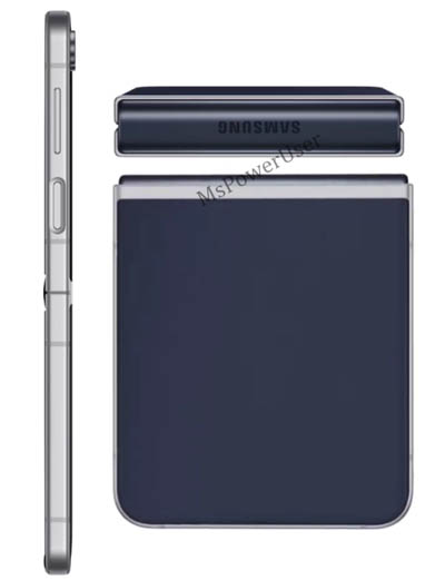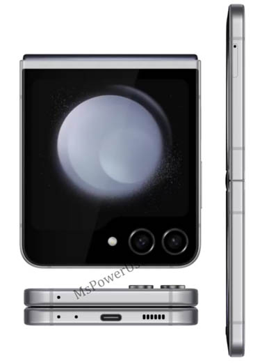 Le reste du téléphone ressemble beaucoup au Galaxy Z Flip5 qui est actuellement en vente. On y trouve un grand écran AMOLED de 3,4 pouces sur la face extérieure et un lecteur d'empreintes digitales installé sur le côté au niveau du bouton permettant de le mettre en veille. Le mobile est équipé d'un système de double caméra, ainsi que d'un port USB Type-C en bas.