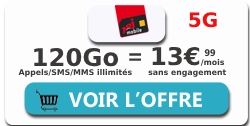 La série spéciale 5G la moins chère est à 13,99€ par mois au lieu de 15,99€ ! Celle-ci vous permettra de surfer sur le net à hauteur de 120Go en France métropolitaine et de 15Go lors de vos séjours en Europe et dans les DOM.