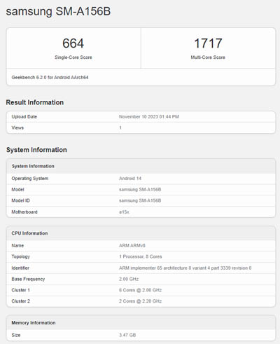 En outre, le benchmark confirme que le Galaxy A15 5G sera livré avec Android 14, ce qui correspond à la tendance générale pour les nouveaux modèles Samsung en 2024. Bien que l'on puisse s'attendre à un lancement au premier trimestre de l'année prochaine, il est essentiel de noter que rien n'est encore définitif. Samsung pourrait toujours ajuster son calendrier en fonction de divers facteurs.