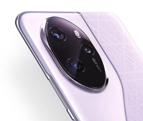 Le nouveau smartphone Honor 100 Pro est décliné en quatre finitions avec du violet pour un revêtement en similicuir ou en verre pour des coloris bleu, noir et nacré. Cette dernière rappelle fortement le Huawei P60 Pro.