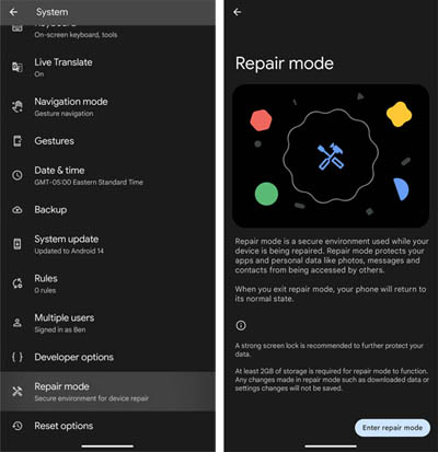 Initialement apparu en septembre 2023, le "Mode de réparation" sur les appareils Google Pixel propose une approche simple mais efficace. En effet, lorsqu'un utilisateur décide de faire réparer son appareil, il peut activer ce mode spécial, permettant ainsi de préserver ses données privées sans nécessité de réinitialiser entièrement l'appareil. Cette fonctionnalité autorise toutefois les techniciens à effectuer les tests nécessaires tout en assurant que les données restent uniquement accessibles au propriétaire d'origine, évitant ainsi tout risque de divulgation non autorisée.