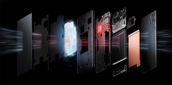 Rappelons la présence de gâchettes sensitives sur le profil pour utiliser le mobile comme une vraie manette de jeu en position paysage. À l’intérieur, il y a un système de refroidissement amélioré ICE 13, comprenant un ventilateur intégré de 22 000 tr/min avec éclairage RGB personnalisable. Red Magic annonce un bruit de fonctionnement de seulement 4 dB, donc à peine audible pour le ventilateur. Le système ICE 13 s’appuie sur une plaque de chambre de vapeur à simple couche permettant une dissipation accrue de la chaleur.