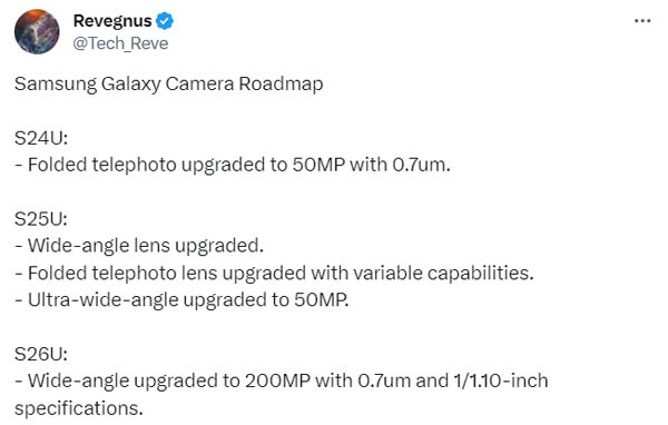 Les leakers @Tech_Reve et @sondexix ont apporté des précisions sur les capacités photographiques, notamment pour le S24 Ultra. En effet, selon eux, ce modèle Samsung haut de gamme devrait intégrer un capteur principal de 50 mégapixels avec des photosites de 0,7 µm, favorisant des performances accrues en photographie nocturne.