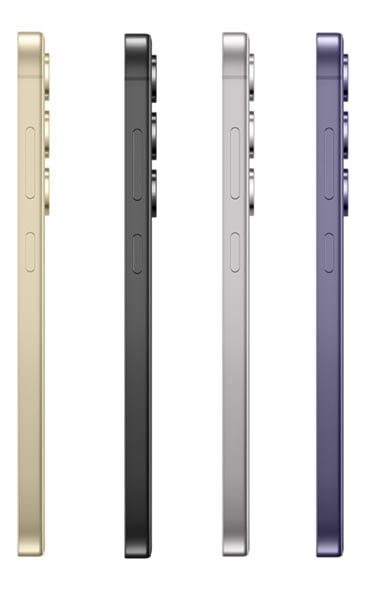 Les modèles Galaxy S24 et S24+ se déclineront en quatre couleurs de base : noir, violet, blanc et jaune, avec des options supplémentaires disponibles exclusivement sur la boutique en ligne de Samsung. Ces téléphones arborent des cadres fins et uniformes et une configuration arrière à trois caméras.