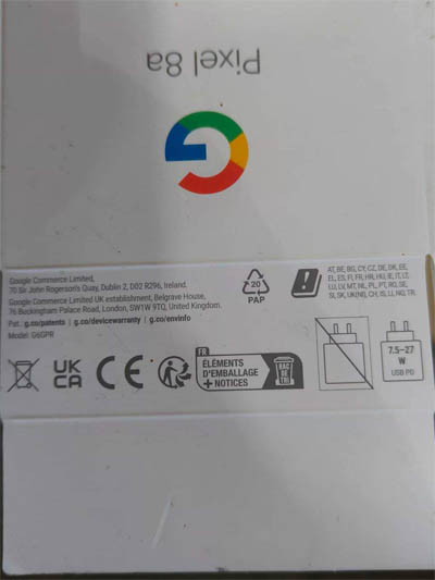 On peut voir que l’appareil dispose, comme ses aînés d’une bande qui occupe toute la largeur de l’appareil, dans son dos pour intégrer les capteurs photo ainsi que le flash. Les coins du téléphone semblent particulièrement arrondis, plus que ceux du Pixel 8, par exemple. Le châssis du smartphone serait en plastique, ce qui n’est pas étonnant vu qu’il s’agit d’un modèle se voulant abordable. Toujours d’après l’examen de la photo de la boîte, il n’y aurait pas de chargeur livré avec l’appareil, comme c’est le cas pour ses prédécesseurs. Celle-ci devrait contenir uniquement un câble USB-C vers USB-C et un outil d’extraction pour le tiroir à cartes SIM.