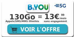 Vous préférez bénéficier d'une enveloppe data plus élevée ? Alors le forfait B&You à 13,99€ par mois devrait vous intéresser. Il vous fournit :