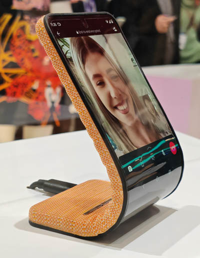 Dans sa configuration standard, le téléphone concept dispose d'un écran P-OLED avec une définition 1080x2400 pixels d’une diagonale de 6,9 pouces. Il peut aussi afficher différentes tailles, plus pratique pour diverses utilisations.