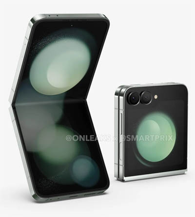 Les rendus 5K révèlent l'autre face du téléphone, montrant un écran de couverture de 3,4 pouces et un agencement des caméras dual similaires au Galaxy Z Flip5. Il y a eu quelques rumeurs évoquant des écrans plus grands mais qui ne semblent donc pas se confirmer si on en croit ce rendu.