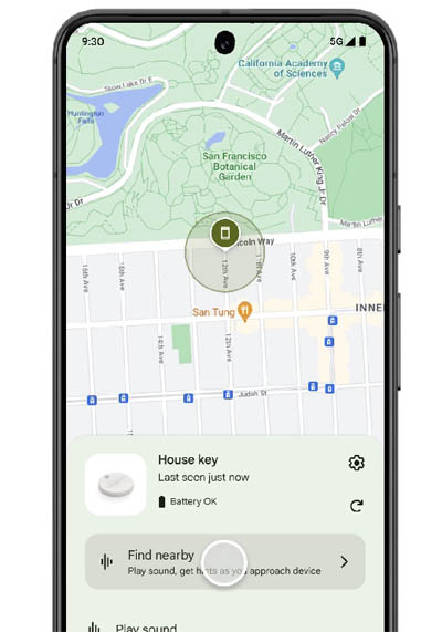 Pour ceux qui souhaitent localiser un appareil perdu à proximité, un bouton "Trouver à proximité" sera ajouté dans l’interface d’Android, facilitant la détermination de l'emplacement précis de l'appareil égaré. Cette fonctionnalité s'étendra aux nouvelles balises Bluetooth dès mai. Dans la maison, les utilisateurs de dispositifs Nest à domicile pourront, grâce à l'application Find My Device, déterminer la proximité d'un appareil perdu avec ces équipements domestiques. Il sera également possible de « partager » les appareils avec d'autres personnes, simplifiant leur localisation en cas de perte.