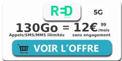 Les opérateurs Bouygues Telecom et RED by SFR mettent tous deux en avant un forfait avec 130Go en France métropolitaine. Tenez-vous bien, la 5G est incluse gratuitement avec la série spéciale B&You comme avec l'offre RED. Le tarif de ces deux forfaits illimités est identique : 12,99€ par mois.