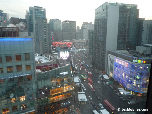 La réputation de Séoul en matière de téléphonie mobile ne s'est pas démentie avec de nombreuses boutiques dédiées aux mobiles le long des rues, le nombre incroyable de personnes fixant leur écran dans le métro (la TV sur mobile fonctionne très bien là-bas alors qu'en France, on attend toujours que les acteurs se mettent d'accord ), la possibilité de retirer de l'argent dans les distributeurs avec son téléphone mobile Bref, vous l'aurez compris l'usage y est très développé !