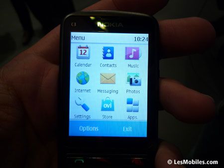 Le téléphone offre un accès rapide à la messagerie instantanée et électronique via une application dédiée pour mettre à jour ses données sur les réseaux sociaux Facebook et Twitter. Il proposera également des applications et jeux issus de l'Ovi Store. Plus épais et mieux fini que le X3-02, le C3-01 devrait séduire un large public.