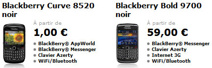 Pour lancer ses nouveaux Forfaits « Ultimate Smartphone », NRJ Mobile commercialise les BlackBerry Bold 9700 et Curve 8520 (exactement les mêmes modèles commercialisés par Virgin Mobile depuis le 13/10) :
