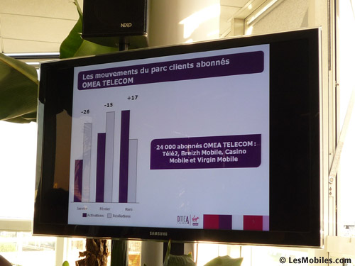 Le groupe OMEA TELECOM, qui regroupe les clients Virgin Mobile, Télé2, Breizh Mobile et Casino Mobile, a ainsi perdu 26.000 clients en janvier, 15.000 en février, avant d'en regagner 17.000 en mars. L'opération se solde donc par une perte de 24.000 abonnés sur le premier trimestre, soit 1,25% des 1,92 million de clients. Un résultat beaucoup moins catastrophique que les chiffres qui pouvaient circuler ici et là.