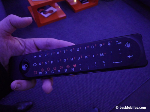 Orange a également redessiné sa télécommande qui peut désormais répondre à vos gestes grâce au giroscope intégré. Vous pourrez piloter votre TV d'un simple geste, plus besoin de pointer votre télécommande vers votre Livebox Play TV. Vous pourrez également vous en servir comme manette de jeux grâce au joystick intégré. Au dos de la télécommande, un clavier complet vous permet de taper vos recherches, de tweeter, ou encore de rédigier vos emails.