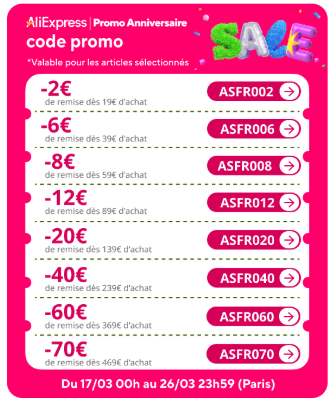 De plus, vous pouvez bénéficier de réductions supplémentaires grâce à des codes promo exclusifs valables jusqu’au 26 mars sur une large gamme de produits :
