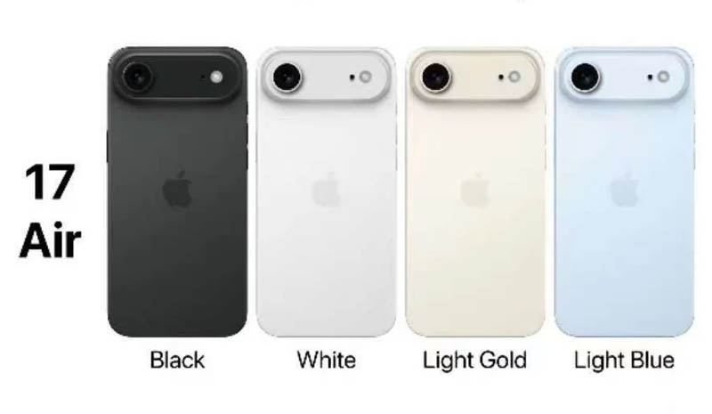 Le nouvel iPhone 17 Air, qui remplace le modèle Plus abandonné en raison de ses faibles ventes, adopterait une approche plus minimaliste avec quatre couleurs : noir, blanc, bleu clair (Pantone 657 U) et or clair (Pantone 11-0604 TPG Gardenia). Cette sélection restreinte s'explique par le positionnement du modèle Air, conçu pour être l'iPhone le plus fin jamais créé avec une épaisseur inférieure à 6 mm.