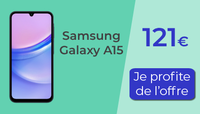- Pour les French Days, le Samsung Galaxy A15 5G est à 121,54 € au lieu de 130 € avec le code FRCD08.