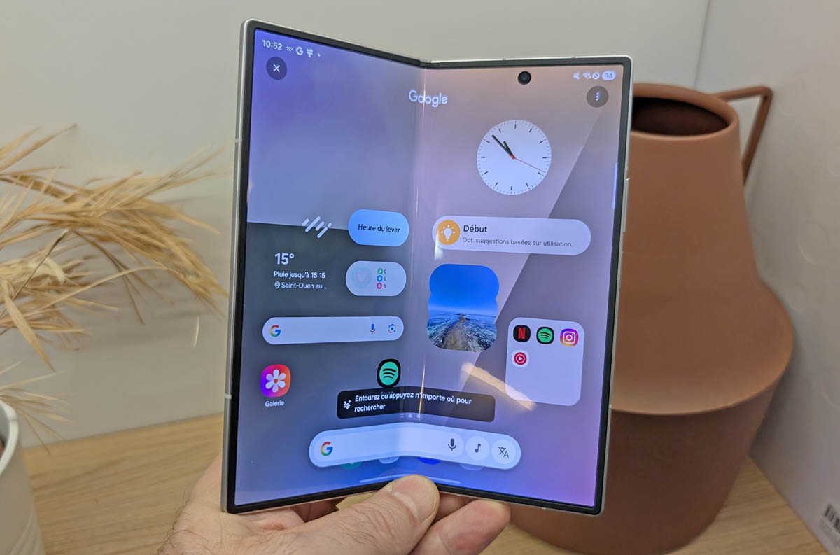 Côté logiciel, le Galaxy Z Fold7 inaugure One UI 8 basée sur Android 16, intégrant de nombreuses fonctionnalités d’intelligence artificielle, notamment via la solution Galaxy AI enrichie par Google Gemini. Par rapport aux Galaxy S25, pas de réelles nouvelles fonctions mais l’adaptation à l’écran interne du smartphone permettant ainsi de faire du multitâche et donc d’afficher plusieurs applications simultanément. Notez que Samsung promet 7 ans de mises à jour pour le système et pour la sécurité, comme les autres mobiles haut de gamme de la marque.