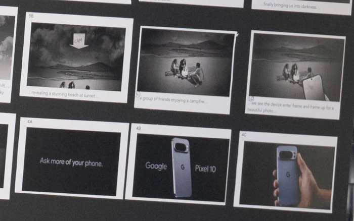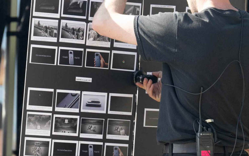 Les storyboards étaient visibles sur le plateau de tournage, confirmant sans équivoque qu'il s'agissait bien du Pixel 10. Ces éléments visuels correspondent au langage graphique typique de Google pour ses campagnes publicitaires, authentifiant ainsi la nature officielle de cette production.