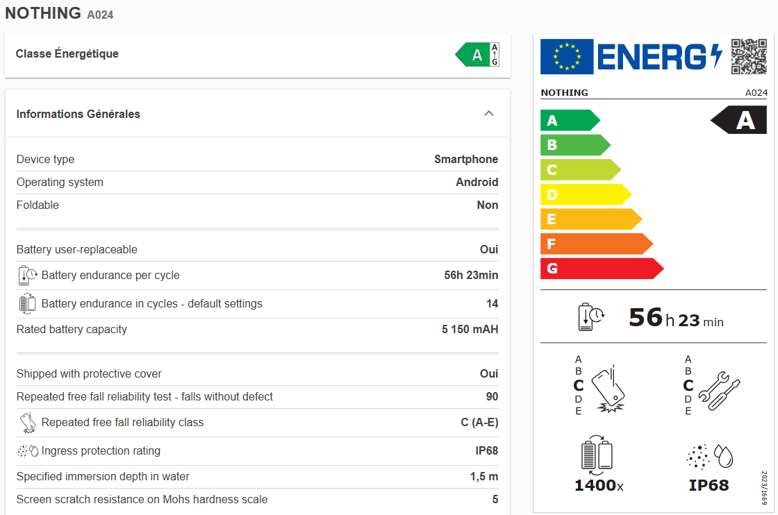 Depuis 2025, les smartphones commercialisés dans l’Union européenne doivent donc être enregistrés dans la base de données EPREL (European Product Registry for Energy Labelling).