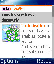 S'il est bien un type de service presque indispensable au moment de prendre la route, ce sont ceux d'Itinéraires et d'Infotrafic. Il ne faut pas confondre les premiers cités avec les solutions mobiles de navigation par GPS (voir ci-dessous). Mappy est sans doute le plus connu, sur l'Internet fixe comme le mobile. Pour ceux qui ne veulent pas investir dans un GPS de seconde monte pour leur véhicule, il existe des applications comme Wayfinder ou Orange Navigation qui transforment votre mobile en véritable navigateur embarqué. Les avantages de telles solutions sont nombreux.