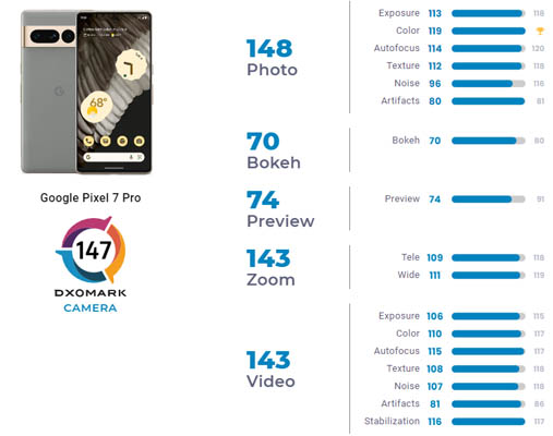 Enfin, le Google Pixel 7 Pro propose de beaux tons de peau, même dans des conditions difficiles. L’exposition a été jugée précise et on a droit à une large plage dynamique. La mise au point automatiquement est rapide, mais également précise, aussi bien en photo qu’en vidéo. Le contraste renvoyé par les images est agréable même pour les scènes à contre-jour. Le niveau des détails est bon, surtout en pleine lumière. Le laboratoire a apprécié la stabilisation ainsi que le niveau de détails à toutes les plages du zoom.