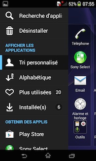 Sony Album, Sony Select et menu de gestion des applications