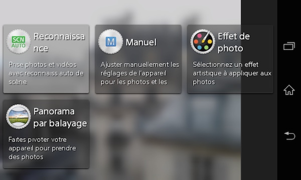 Interface photo Sony sur le Xperia E1