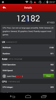 La fluidité n'est pas toujours de mise une fois dans les applications, mais le bilan est plutôt positif compte tenu de la modeste configuration du smartphone. L'Adreno 302 (GPU) s'en sort remarquablement bien notamment. Nous avons pu jouer à Angry Birds Go! sans problème. Dead Trigger 2 s'est en revanche montré un peu plus capricieux, tout en restant jouable.