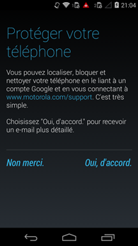 Pas de doublons parmi les applications pré-installées non plus. Motorola se contente de compléter la suite logicielle de Google avec quelques outils pratiques comme Assist et Motorola Migrate. Le premier modifie automatiquement les paramètres du smartphone selon les situations (silencieux s'il détecte dans l'agenda qu'une réunion est programmée par exemple). Le deuxième permet de rapatrier les données de son ancien smartphone (Android ou iPhone).