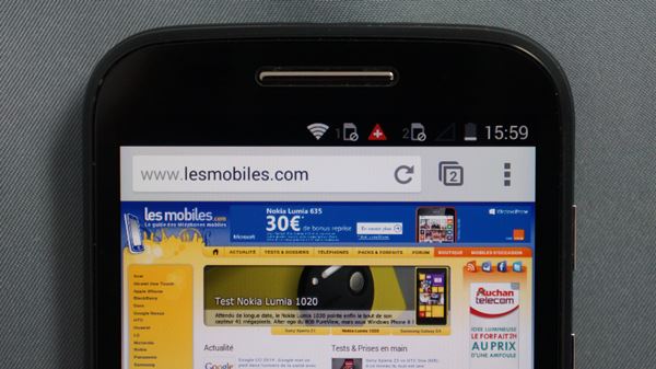 Le Snapdragon 200 et ses deux coeurs Cortex-A7 cadencés à 1,2 GHz font également le boulot. Notamment pour le décodage des vidéos jusqu'en 720p (hors MKV, toujours problématique avec Qualcomm), ce qui est largement suffisant compte tenu de la définition de l'écran (qHD). Comme indiqué plus haut, ce dernier offre un affichage de qualité. Le haut-parleur situé juste en-dessous (à l'avant, donc) est une autre très bonne surprise puisqu'il produit un son puissant et clair, même au volume maximal.