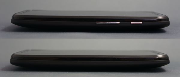 L'avant est occupé par une large vitre qui protège l'écran, cerné par un haut-parleur argenté en haut (pour les appels) et, nouveauté, un autre en bas (pour le multimédia). Un cadre en plastique brillant descend sur les tranches, jusqu'au niveau des boutons d'alimentation et de volume idéalement placé sur la tranche droite et du port microUSB sur la tranche inférieure.
