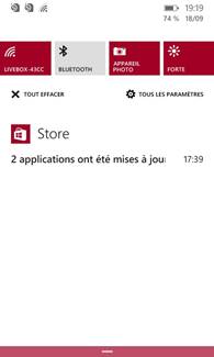 Evidemment, nous sommes tout de même heureux d'y retrouver Windows Phone 8.1. Microsoft a apporté de nombreuses améliorations dans la dernière version de son OS mobile. Le système de tuiles dynamiques a évidemment été conservé, mais agrémenté de nouvelles options de personnalisation. Il est notamment possible d'y appliquer un papier peint. Nous trouvons également un centre de notifications avec quatre réglages rapides ou raccourcis paramétrables à tirer depuis le bord supérieur ou encore un clavier avec saisie par glissement (comme Swype). Il faudra en revanche patienter pour Cortana.
