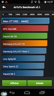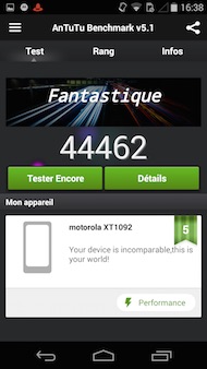 Résultats du Moto X 2e Gen. sur Antutu et 3DMark