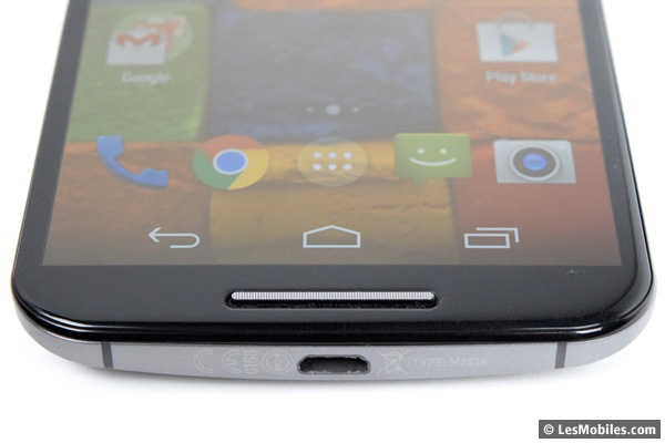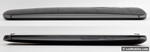 Les tranches sont cerclées de métal. Les seuls boutons matériels se trouvent à droite, avec le volume et la mise en veille. En bas, un port microUSB. En haut, le jack 3,5 mm et une trappe pour la carte SIM. Et rien d'autre : la classe. Avec de telles tranches, vous conviendrez que ce smartphone est bien plus ambitieux que ne le sont le nouveau Moto G et l'ancien Moto X. Avec un petit bémol. Design unibody et absence de port d'extension mémoire : Motorola a choisi ici une combinaison peu évolutive. Sachez que l'option 32 Go coûte 50 euros sur Moto Maker (un prix dans la moyenne du marché, Apple facturant une centaine d'euros pour 64 Go). Cette option n'est pas proposée chez les opérateurs ou les distributeurs.