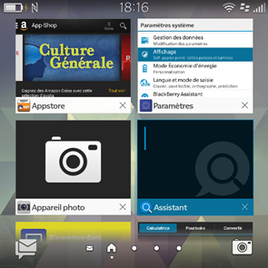 De gauche à droite : Amazon App Store, BlackBerry Assistant pour les commandes