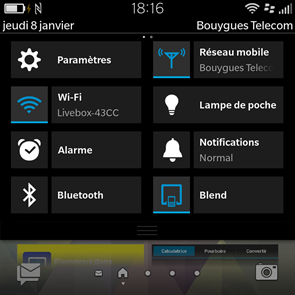 Libre ensuite à l'utilisateur de l'exploiter entièrement ou de se contenter de l'image en utilisant la barre de navigation. Nous connaissons déjà BlackBerry 10.3 depuis le Passport, avec la barre d'actions, l'Amazon AppStore, BlackBerry Assistant ou encore BlackBerry Blend, mais nous le redécouvrons différemment avec la barre de navigation. Tout ou presque est possible sans toucher l'écran. La seule exception que nous ayons trouvée est l'accès aux réglages rapides (depuis l'écran d'accueil) et l'horloge (depuis l'écran de verrouillage), à tirer depuis le bord supérieur.