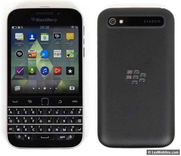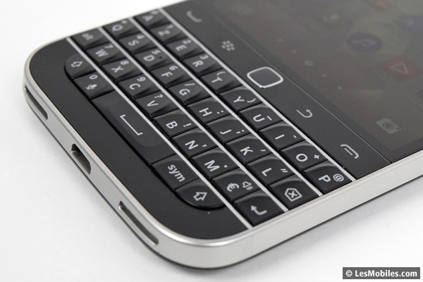 Présenté comme le successeur direct du Bold 9900, le Classic n'en reprend finalement que la barre de navigation de l'extérieur. Le reste rappelle davantage les modèles plus récents. Nous retrouvons un peu du Q10 dans le clavier avec touches biseautées et parfaitement alignées ainsi que dans l'écran carré juste au-dessus. Nous retrouvons également un peu du Passport dans le format très rectangulaire et le cadre métallique tout autour.