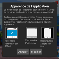 Plusieurs options sont proposées pour ajuster l'affichage des applications