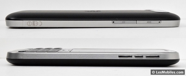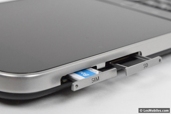 L'agencement de ce dernier est également très familier. Un double haut-parleur stéréo entoure le port micro-USB en bas. Les boutons du volume sont situés à droite, au niveau du pouce. L'alimentation et la prise jack se partagent la tranche supérieure. Les cartes microSIM et microSD prennent en revanche place dans des tiroirs encastrées dans le flanc gauche du smartphone. Vous l'aurez compris. Qui dit tiroir dit également capot arrière impossible à retirer.