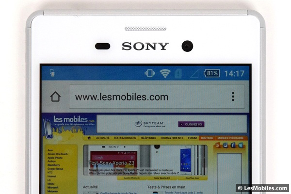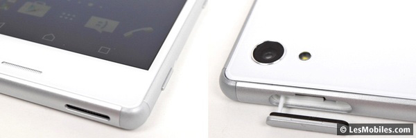 Il reprend aussi certaines caractéristiques techniques du châssis : une certification IP68, malgré l'absence de trappe de protection pour le port microUSB ou le jack 3,5 mm, détail qui sera repris dans le Xperia Z3+. D'ailleurs, si vous comparez les deux mobiles, vous remarquerez que les dimensions sont très proches : 0,5 mm de différence en hauteur, 0,6 en largeur et 16 grammes sur la balance. Et pourtant, le M4 offre un écran de 5 pouces, alors que le Z3 une dalle de 5,2 pouces. Et non, ce n'est pas un haut de gamme.