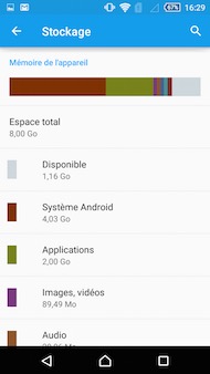 Comme nous vous l'indiquions en introduction, Android Lollipop pèse sur le système un peu plus de 4 Go, soit la moitié de l'espace de stockage du Xperia M4. Dans ces 4 Go sont compris les applications Xperia qu'il n'est pas possible de désinstaller, comme Musique, Album, Vidéo, PlayStation Video, What?s New, Xperia Lounge Movie Creator, ainsi que l'ensemble de la suite Google. Parmi ceux qui ne peuvent pas être éliminé, nous retrouvons deux applications tierces : File Commander, un explorateur de fichiers, et Office Suite, la suite bureautique. Ils sont tous les deux développés par MobiSystems.