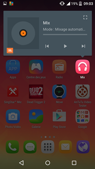 Nous avons également trouvé quelques widgets inédits, dont un peu encombrant pour l'heure et la météo. Les autres sont liés à des applications ajoutées pour compléter la suite de Google. Parmi celles-ci, nous retrouvons notamment une application Mix développée avec JBL, qui s'occupe également du traitement audio, pour jouer au DJ. Alcatel OneTouch fournit également une boutique alternative, un Centre des jeux (avec quelques jeux Gameloft préinstallés et un lien pour en télécharger d'autres), une radio, un calendrier, une boussole ou encore un dictaphone. Sans oublier les outils de synchronisation et de maintenance. Notez que certaines d'entre elles disposent d'un mode fenêtre plus réactif lorsqu'elles sont ajoutées en raccourcis sur le bureau.