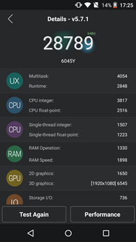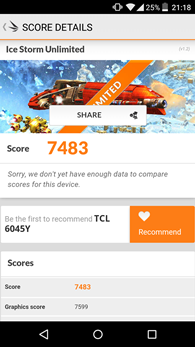 Et nous n'en espérions pas moins compte tenu de la configuration de l'Idol 3. Ce n'est pas la première fois que nous croisons le Snapdragon 615 de Qualcomm et, s'il ne nous a jamais réellement impressionnés, il s'en est toujours assez bien sorti dans les tâches courantes et même moins courantes avec ses huit coeurs Cortex-A53 cadencés à 1,5 GHz pour la moitié et 1 GHz pour l'autre. Et c'est encore le cas ici, où nous le retrouvons accompagné de l'Adreno 405 pour la partie graphique et de 2 Go de RAM.