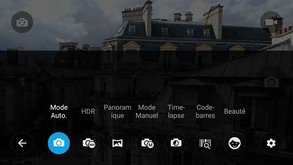 Nous avons également rencontré d'autres bonnes surprises à l'ouverture de l'application photo, à commencer par de nombreux modes de prises de vue. Les classiques HDR et Panorama sont évidemment présents. S'ajoutent à cela un lecteur de code-barres, un mode beauté pour les portraits (et les selfies, bien sûr) ainsi qu'un mode Time-lapse et, enfin, un mode Manuel avec contrôle des ISO, de la balance des blancs et même de la mise au point et de la vitesse d'obturation. Pas d'enregistrement RAW toutefois. Notez enfin que les deux appareils photo sont compatible HD 1080p en vidéo.