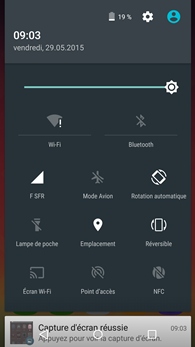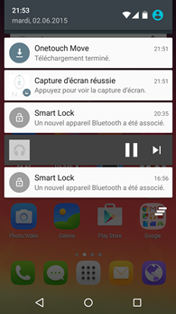 Revenons désormais à l'interface utilisateur de l'Idol 3. Bonne nouvelle, elle est basée sur Android 5.0 Lollipop. Basée car il est loin le temps où Alcatel OneTouch se contentait de la ROM Vanilla de Google. Il en conserve néanmoins les bases : les touches de navigation virtuelles, l'écran d'accueil à panneaux multiples pour les raccourcis et widgets, le menu principal avec toutes les applications installées, le centre de notifications avec réglages rapides et le gestionnaire de multitâche avec présentation en cartes (et toujours pas d'informations sur la RAM utilisée/disponible).