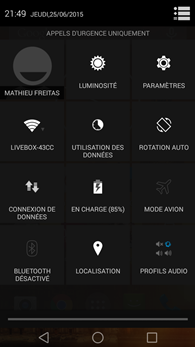 Enfin, il y a aussi une mauvaise surprise à l'allumage. Ne vous laissez pas tromper par les touches de navigation empruntées à Lollipop, c'est bien de l'Android 4.4.4 KitKat que nous retrouvons et c'est plutôt regrettable puisque Lollipop est tout de même disponible depuis novembre 2014. Les puristes apprécieront au moins de retrouver une expérience stock puisque, comme toujours, Kazam applique une surcouche très légère puisqu'elle n'affecte pas plus l'écran de verrouillage que l'écran d'accueil avec ses panneaux multiples et ses widgets. RAS aussi dans le centre de notifications, tout comme dans le gestionnaire de multitâche.